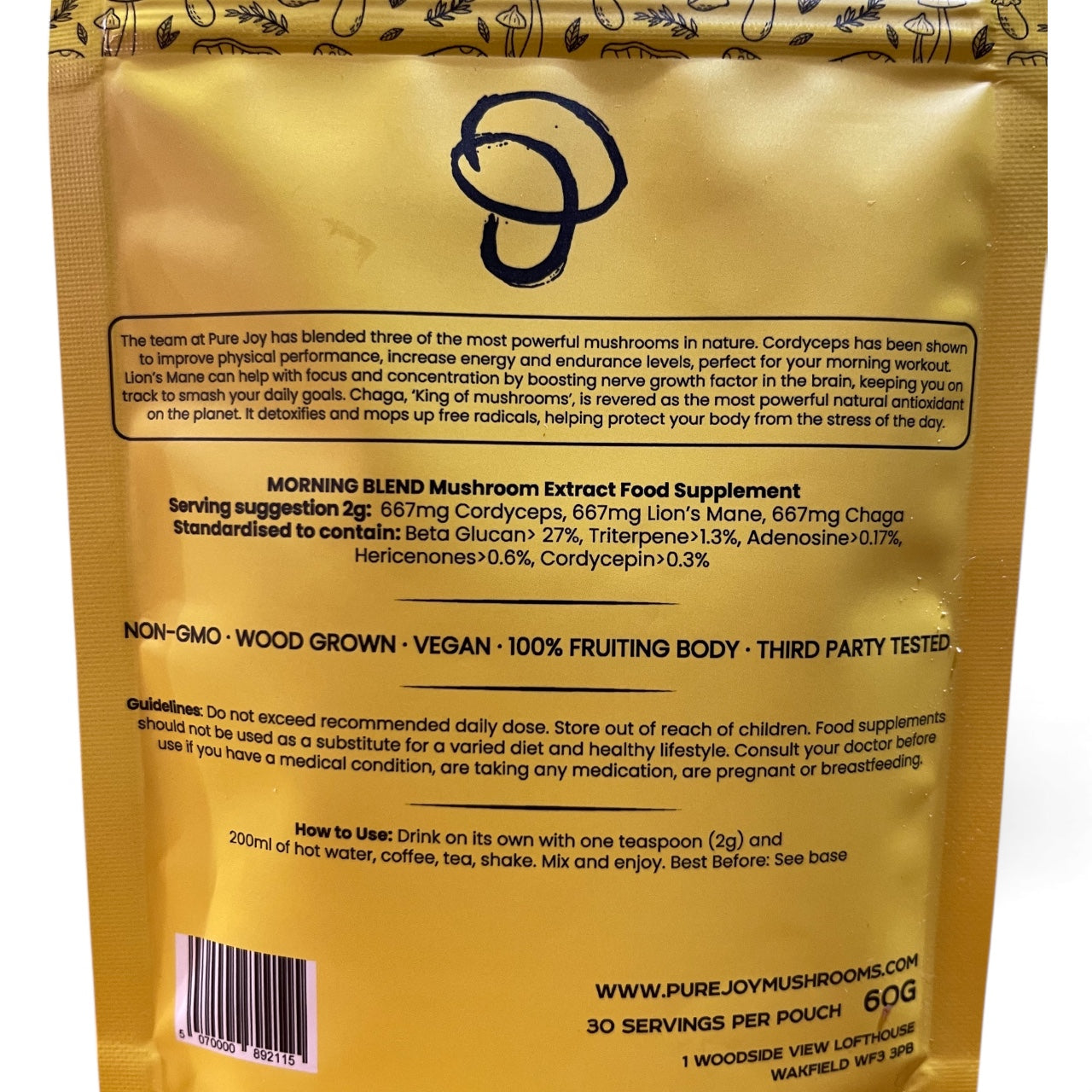 ½ scoop mid-morning, lunchtime, or early afternoon, in a shake, hot water, herbal tea, or your favourite beverage.